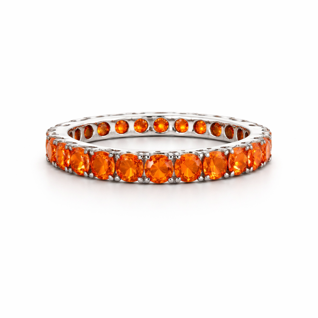 Anel banhado a ródio branco, com zirconia na cor laranja.