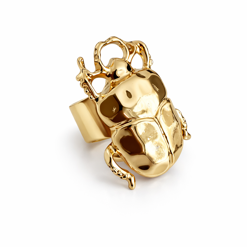 Anel dourado besouro, banhado a ouro.