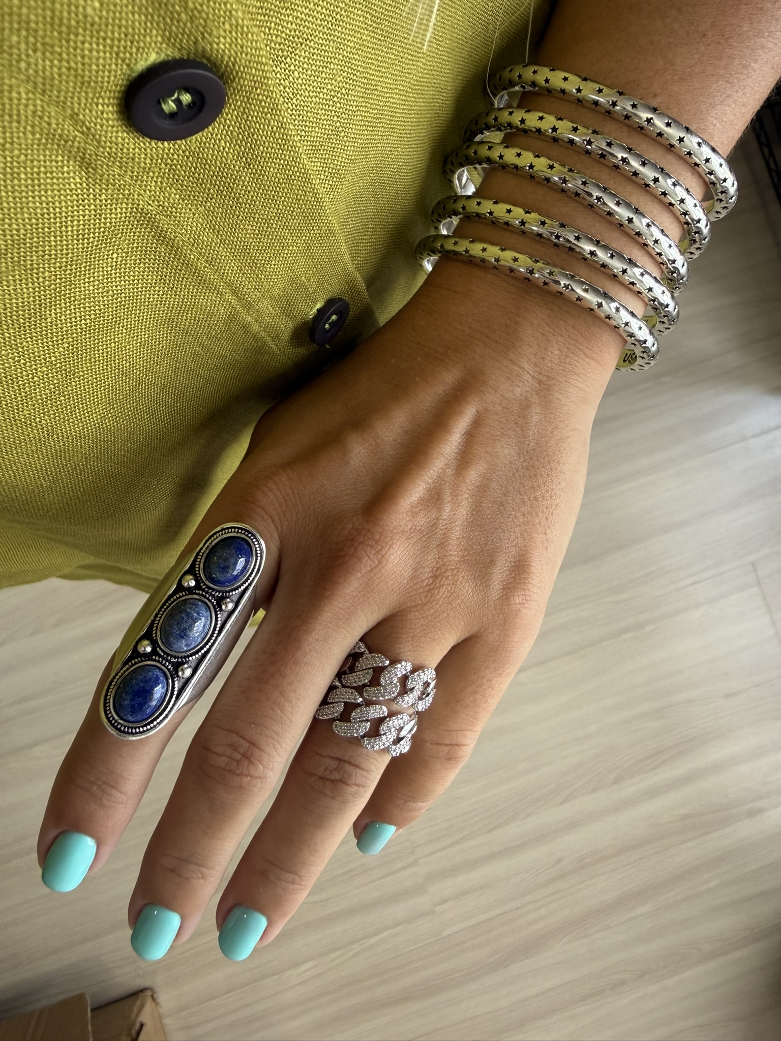Anel corrente prata, banhado a ródio branco.