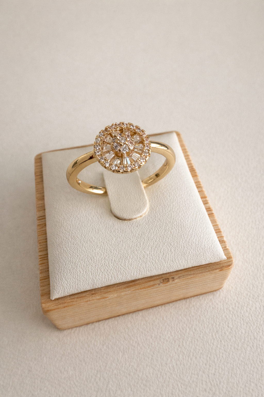 Anel dourado, banhado a ouro, com zirconias na cor cristal