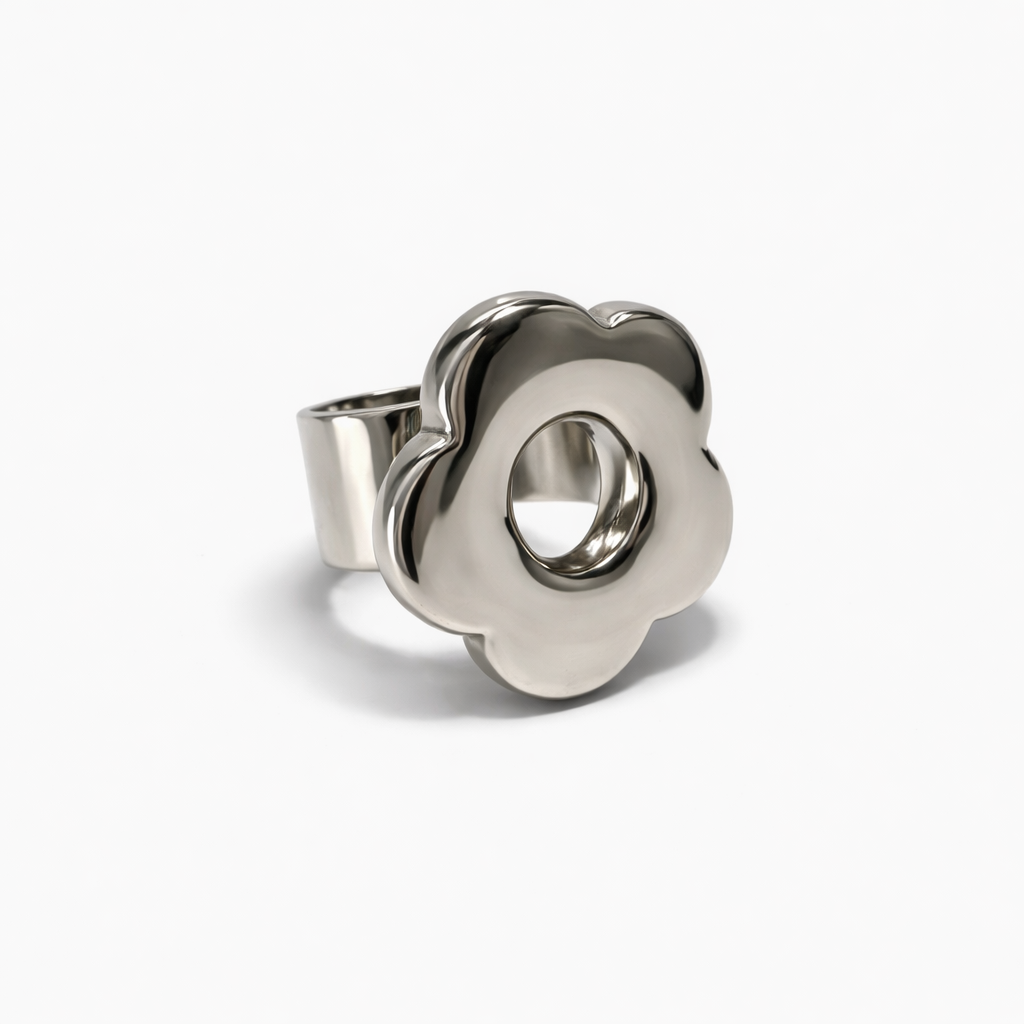 Anel Margarida banhado em ródio branco.
