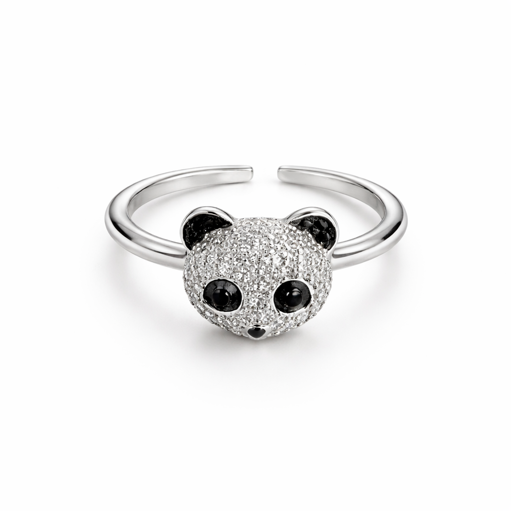 Anel banhado em ródio branco, com microzirconias na cor cristal e preto.