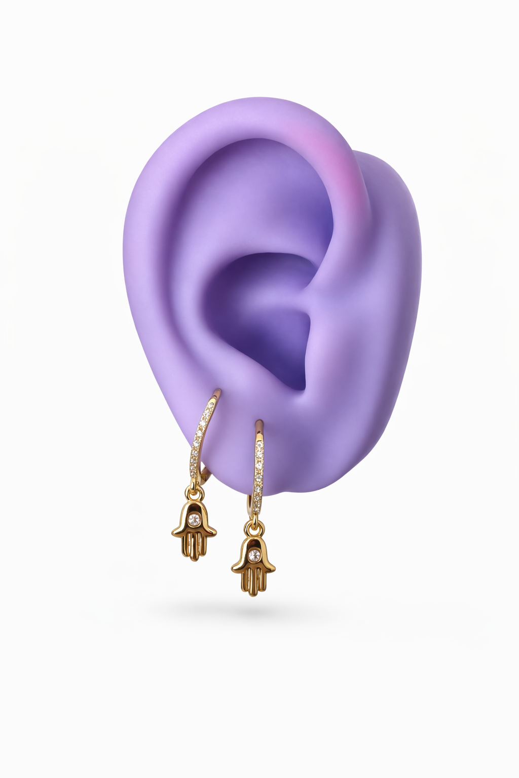 Argolinha banhada a ouro, com zirconias, e pingente dourado de mão de fátima