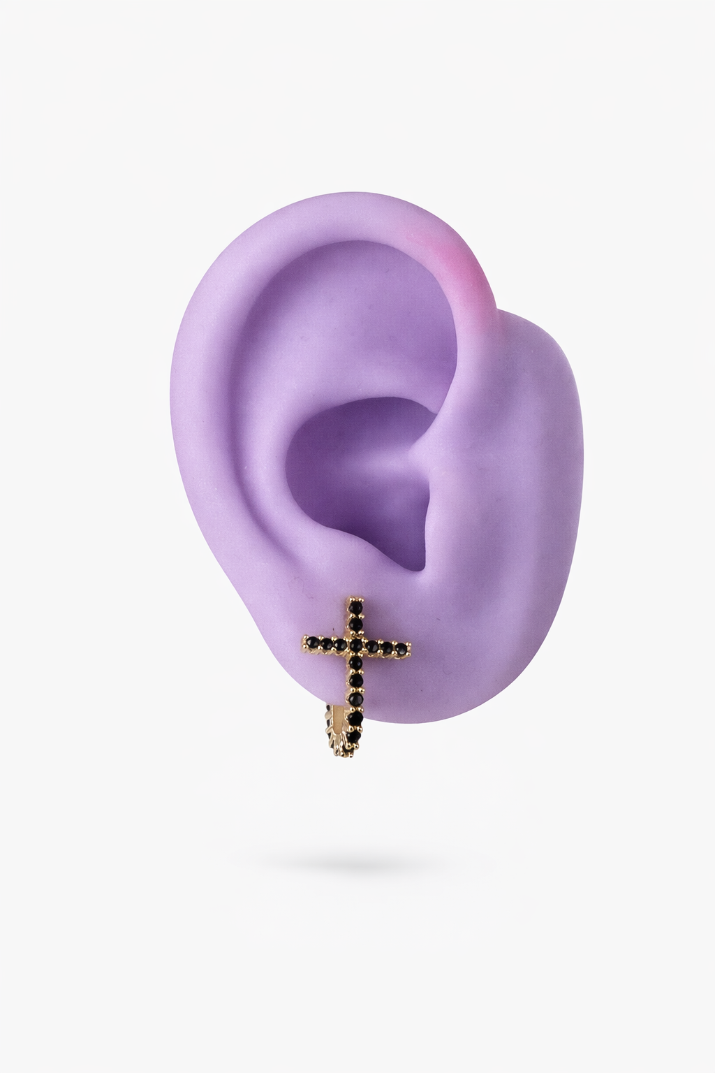 Brinco cruz banhado em ouro 18k, com zirconias pretas.