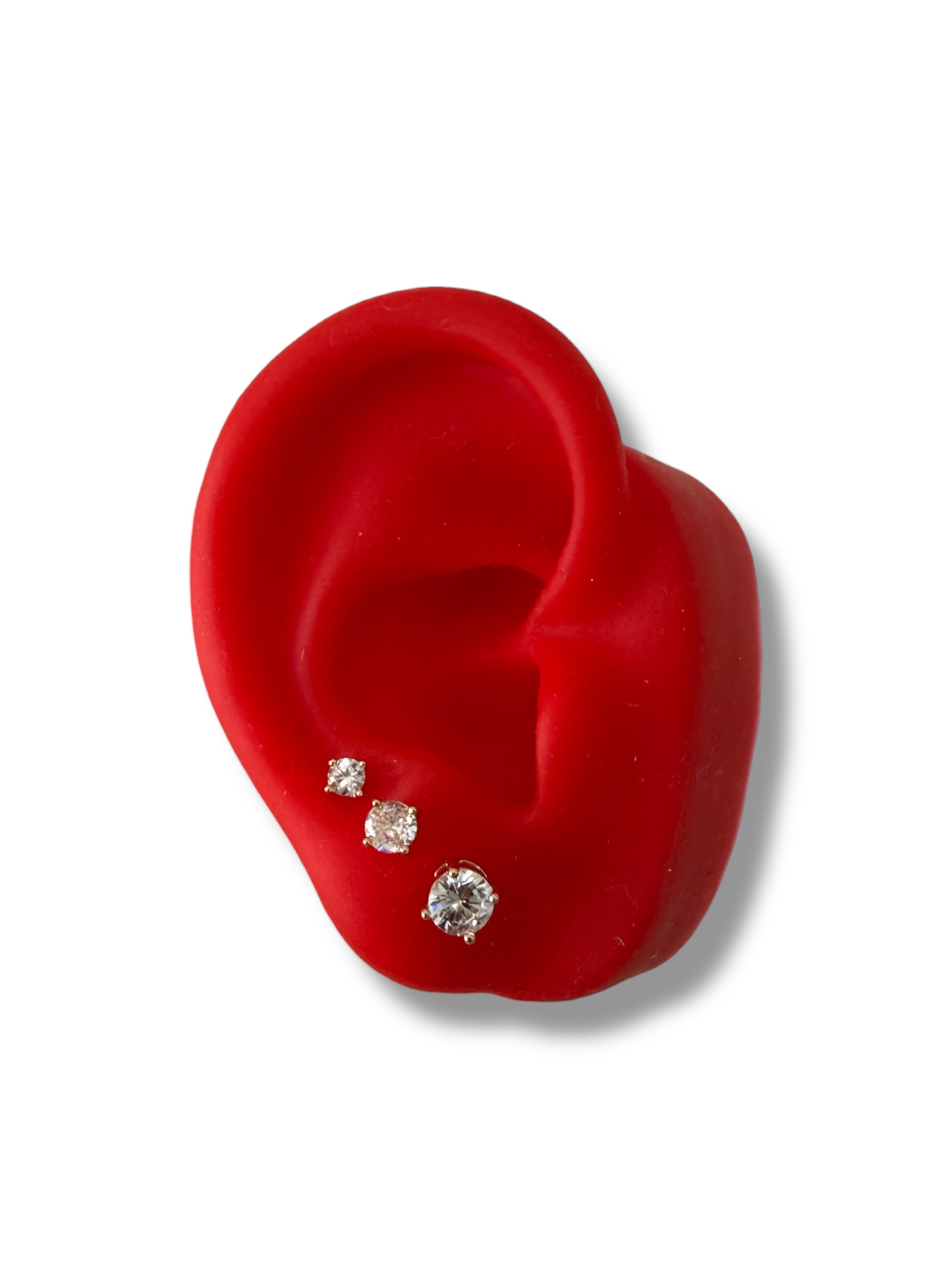 Trio brinco dourado, com zircônias, banhado a ouro 18k.