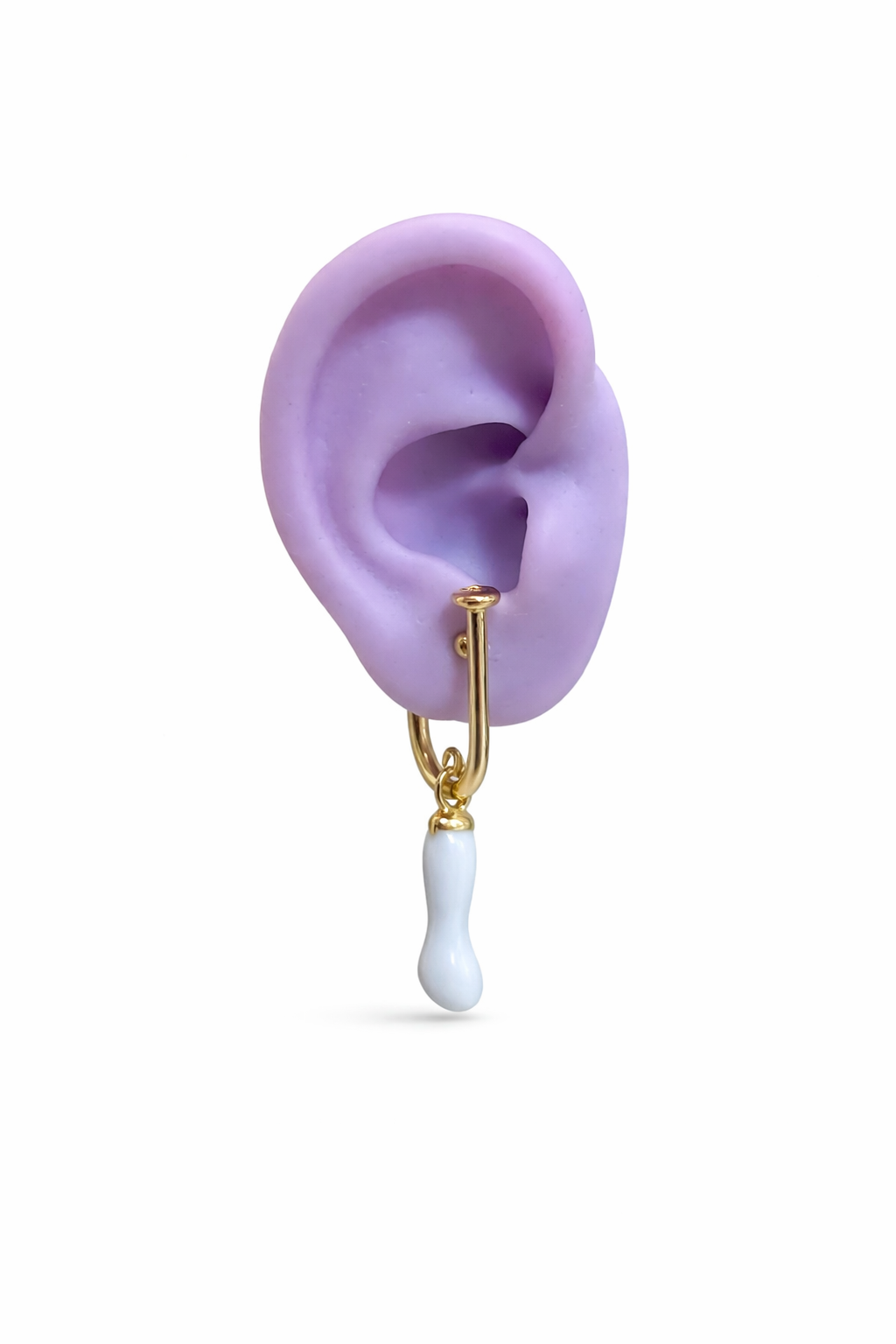 Brinco dourado banhado a ouro, com pingente resinado na cor azul claro.