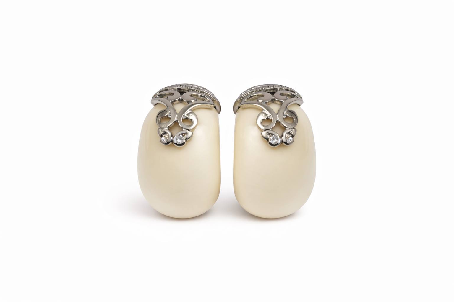 Brinco com pino em ródio branco e meia argola em acrílico na cor off white
