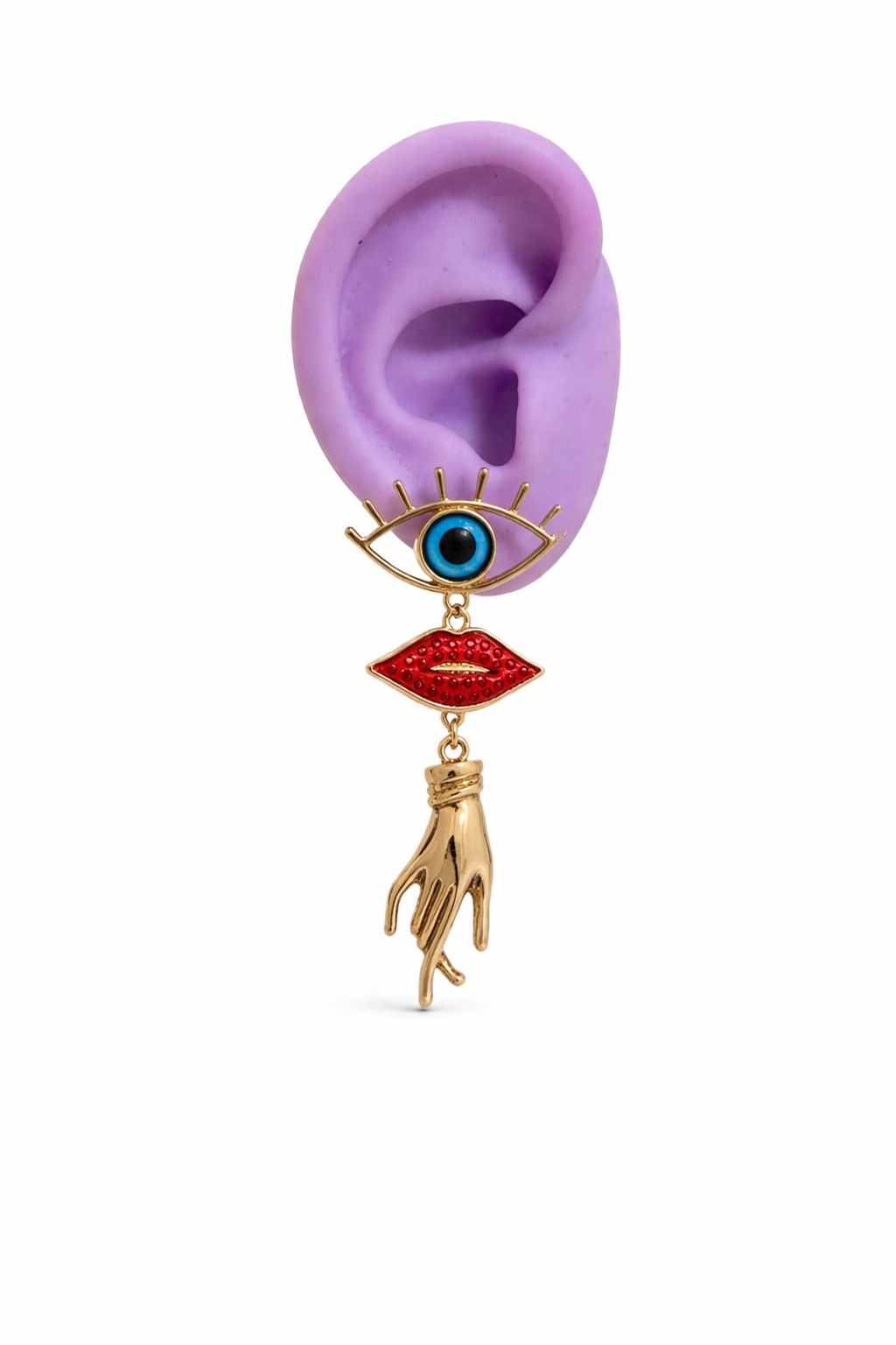 Brinco dourado com apliques de strass e resina.