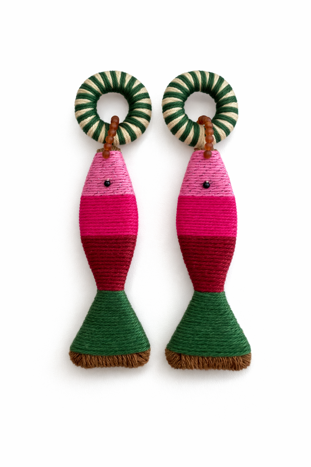 Brinco sardinha, todo em linha feito manualmente.