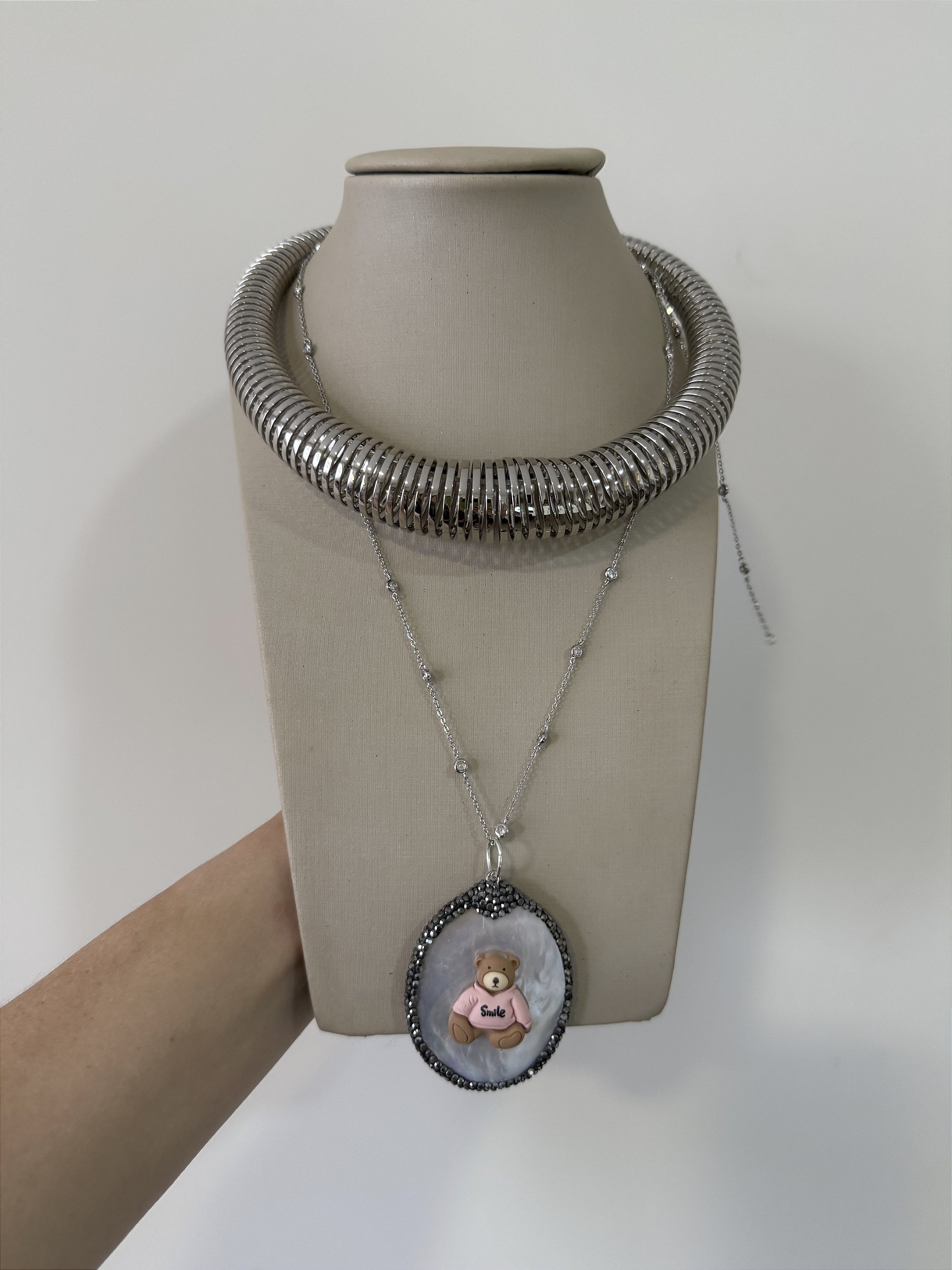 Colar aro mola em banho de ródio branco.
