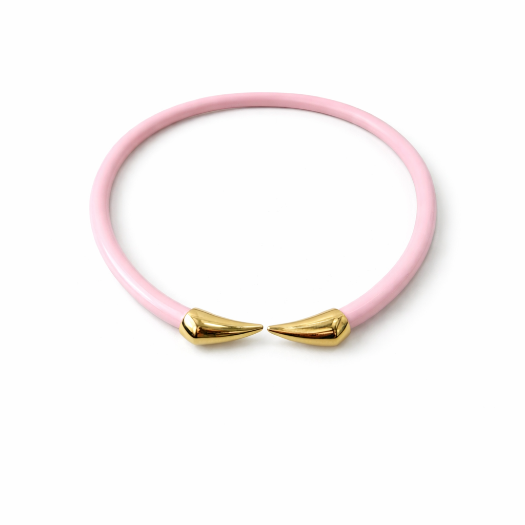 Colar aro em acrílico premium rosa claro, com ponteiras douradas