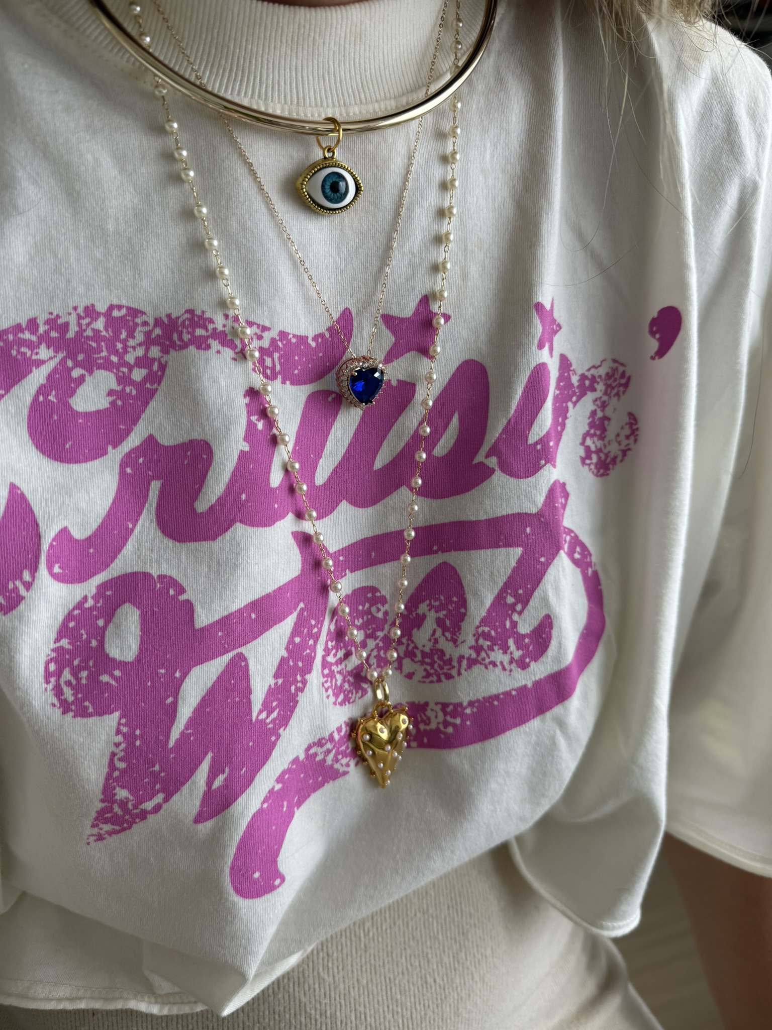 Colar coração perolinhas, banhado a ouro, com pingente dourado.