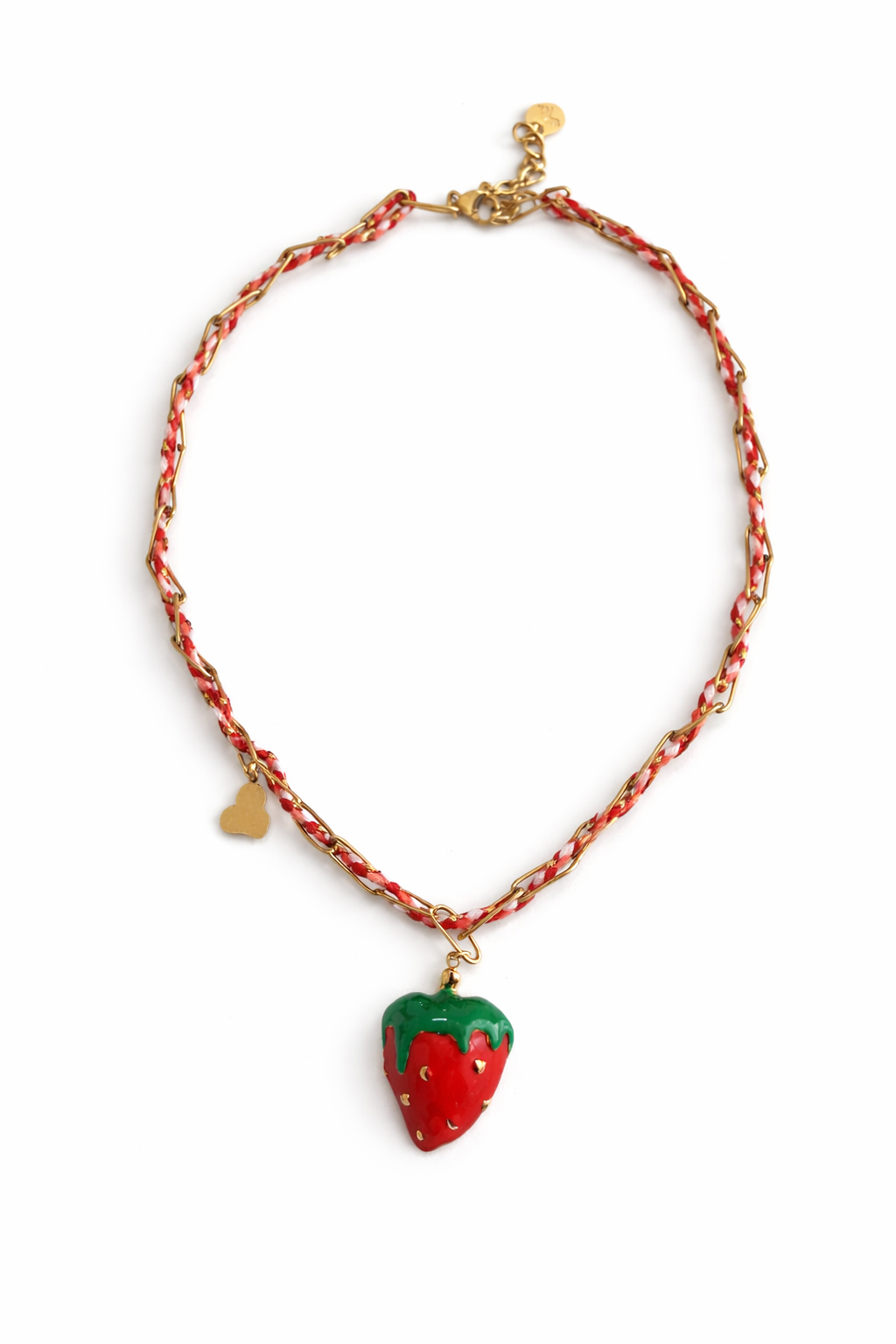 Colar corda vermelha com pingente moranguinho resinado.