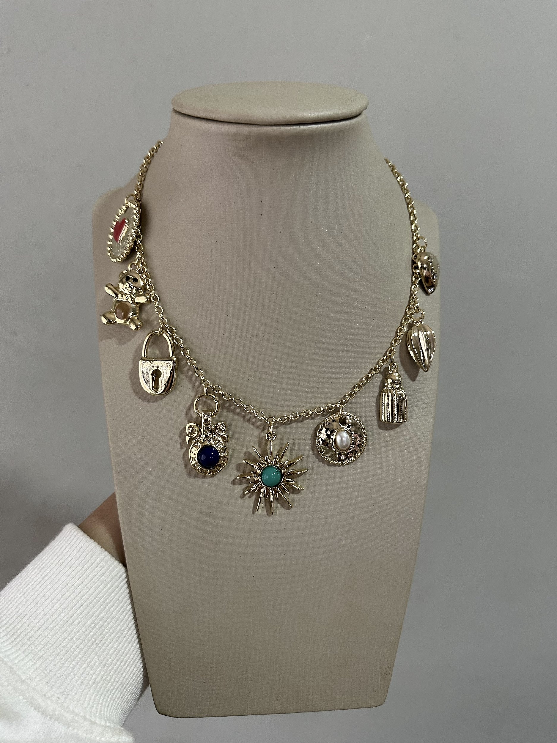 Colar dourado, banhado a ouro, com pingentes