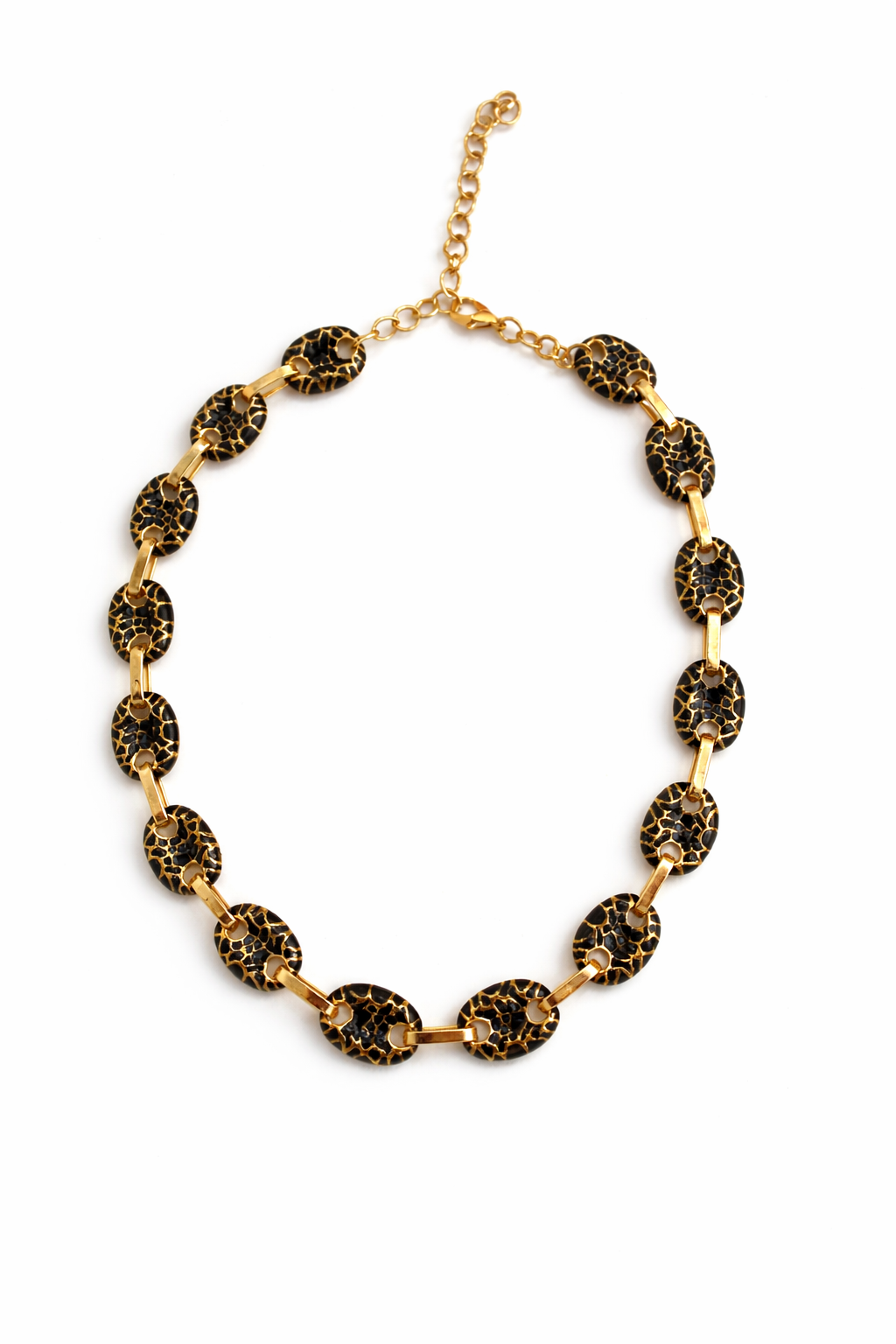 Colar dourado, banhado a ouro 18k, com detalhes em resina na cor preto.