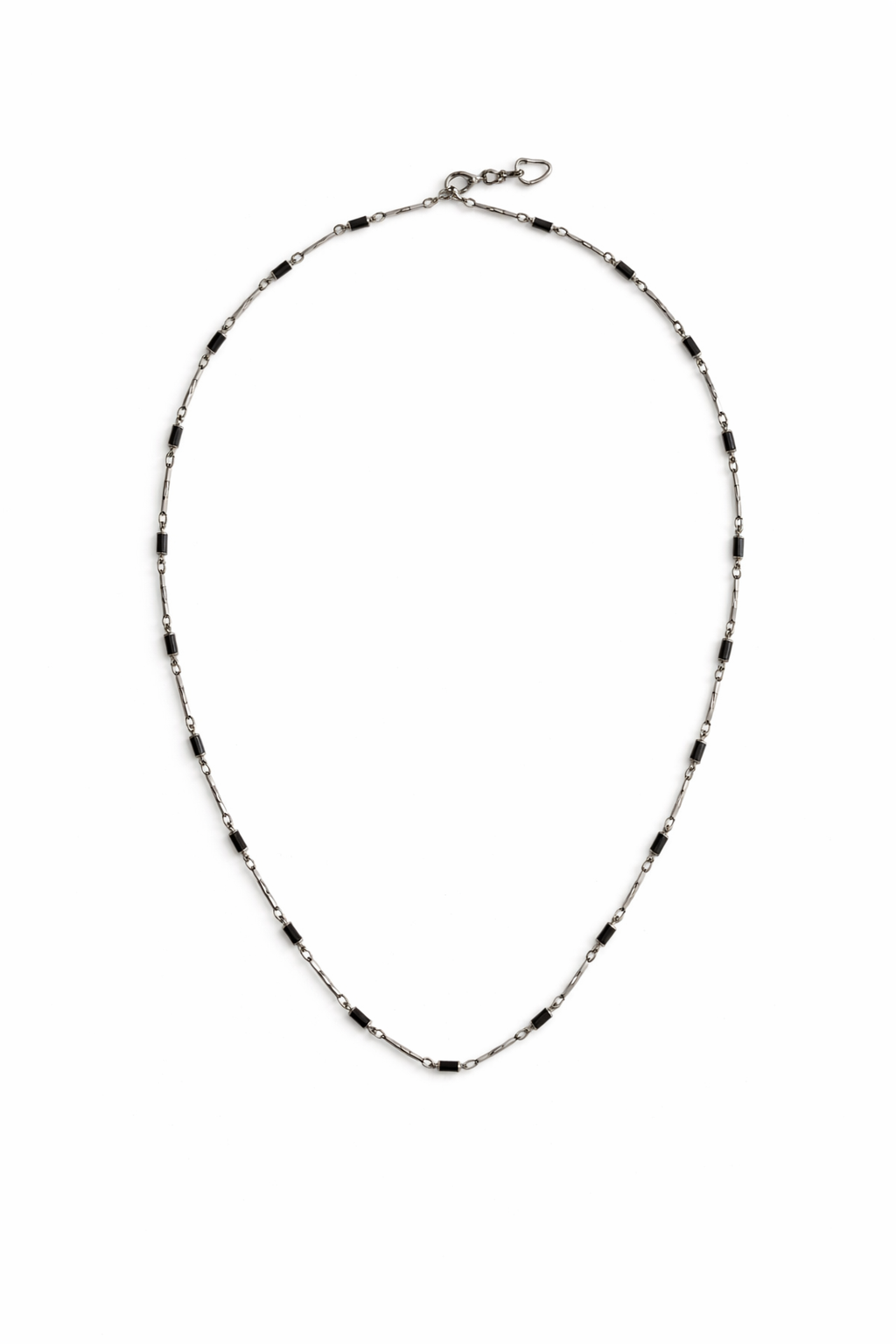 Colar longo ródio branco com zirconias quadradinhos na cor preta.
