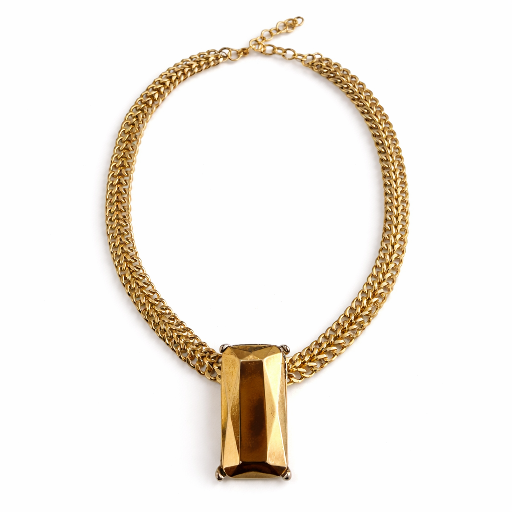 Colar dourado malha, com pingente quadrado.