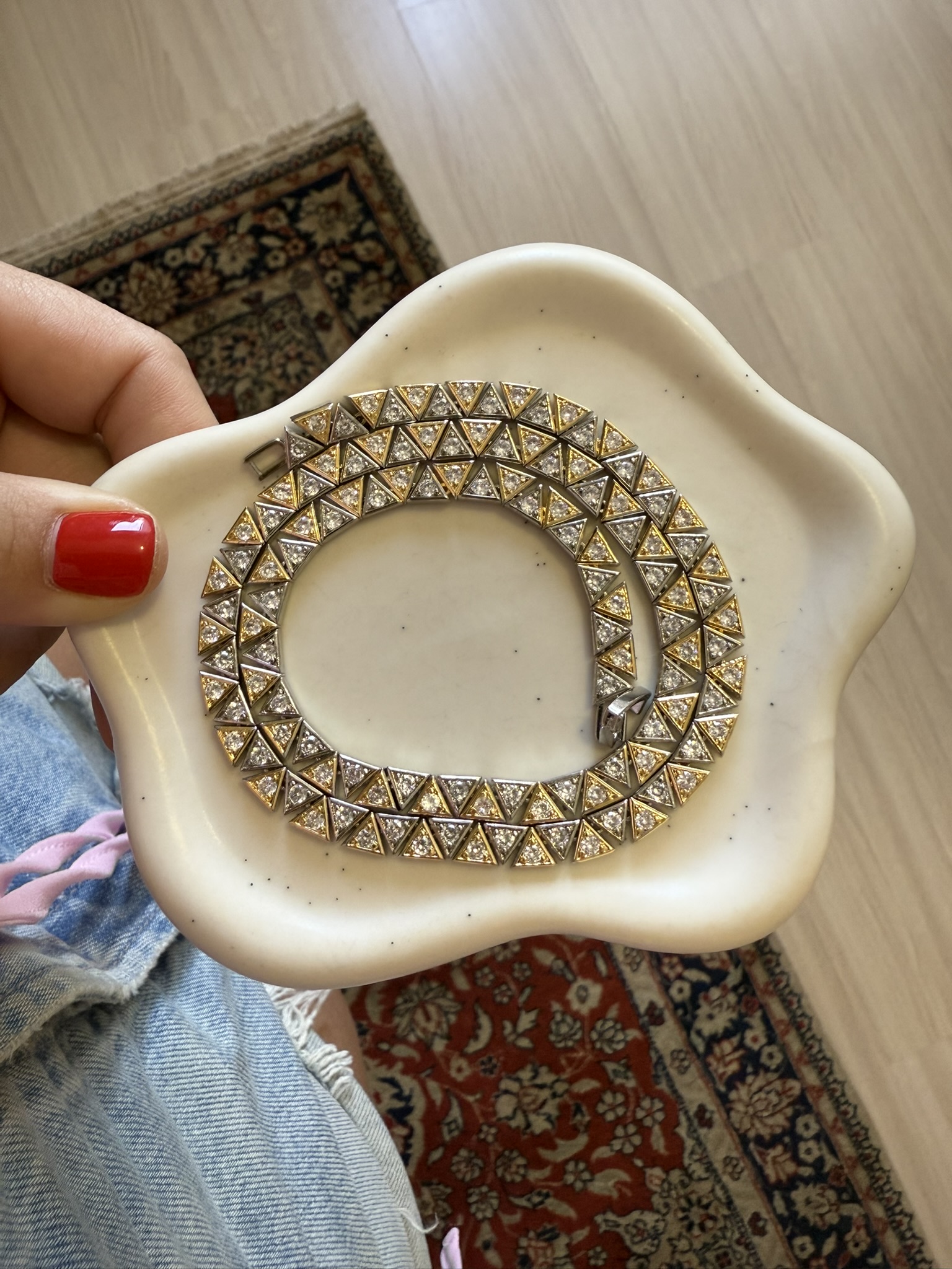 Colar riviera triangulos, banhados a ouro e ródio branco em 10 milésimos