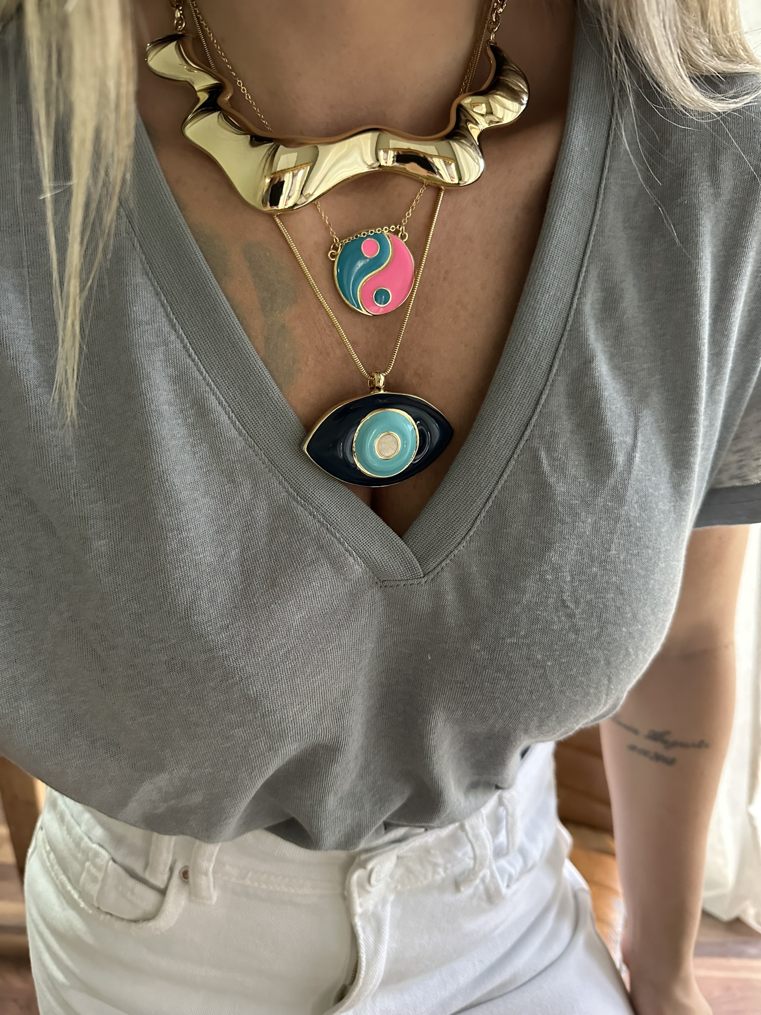 Colar organico dourado, banhado a ouro 18k, altura ajustável.