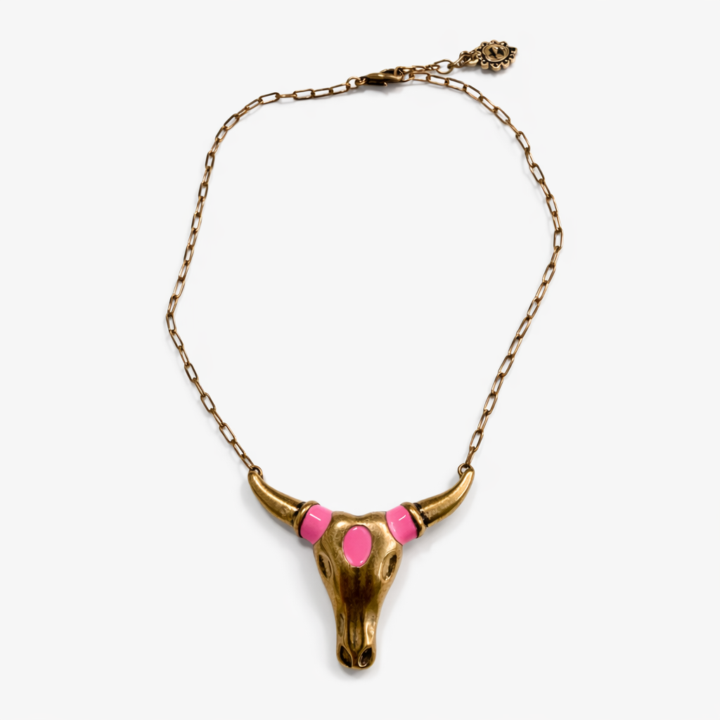 Colar com banho em prata envelhecido, e detalhes em resina na cor pink.