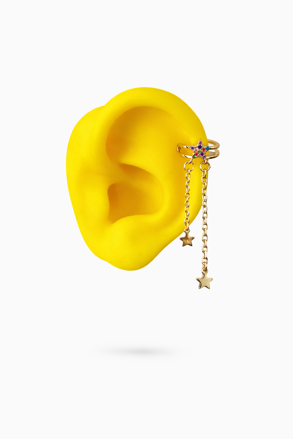 Piercing fake banhado a ouro 18k, com microzirconias coloridas.