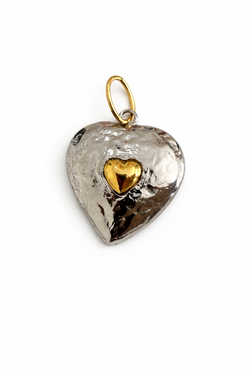 Pingente coração banhado em ródio branco com miolo em ouro.