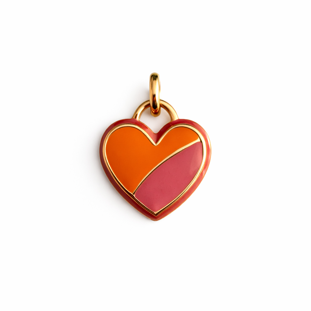 Pingente banhado a ouro, com resina na cor rosa e laranja.