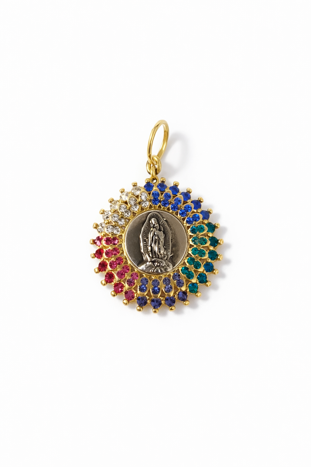 Pingente dourado banhado a ouro 18k, com zirconias coloridas