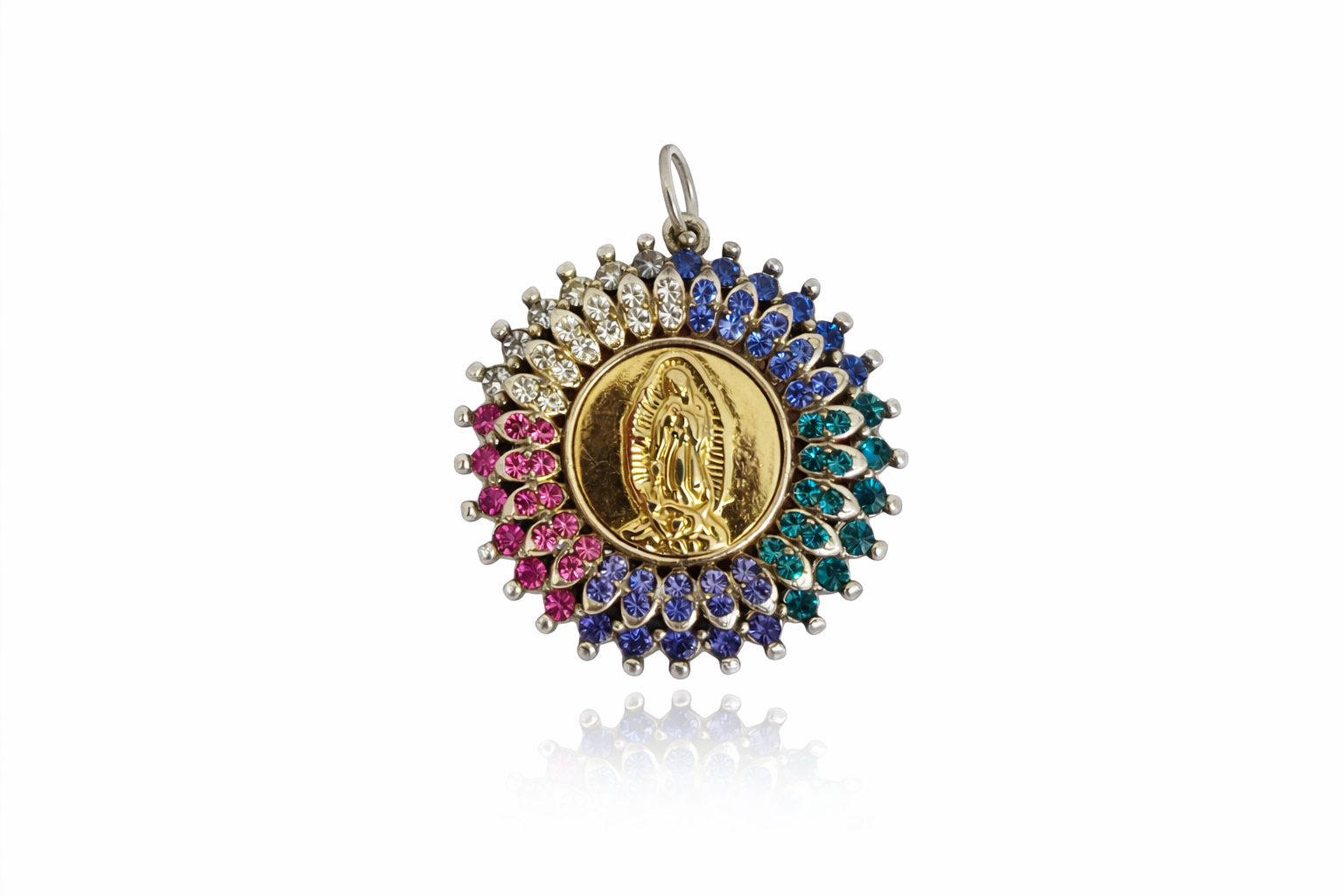 Pingente pratead banhado a ródio branco, com zirconias coloridas