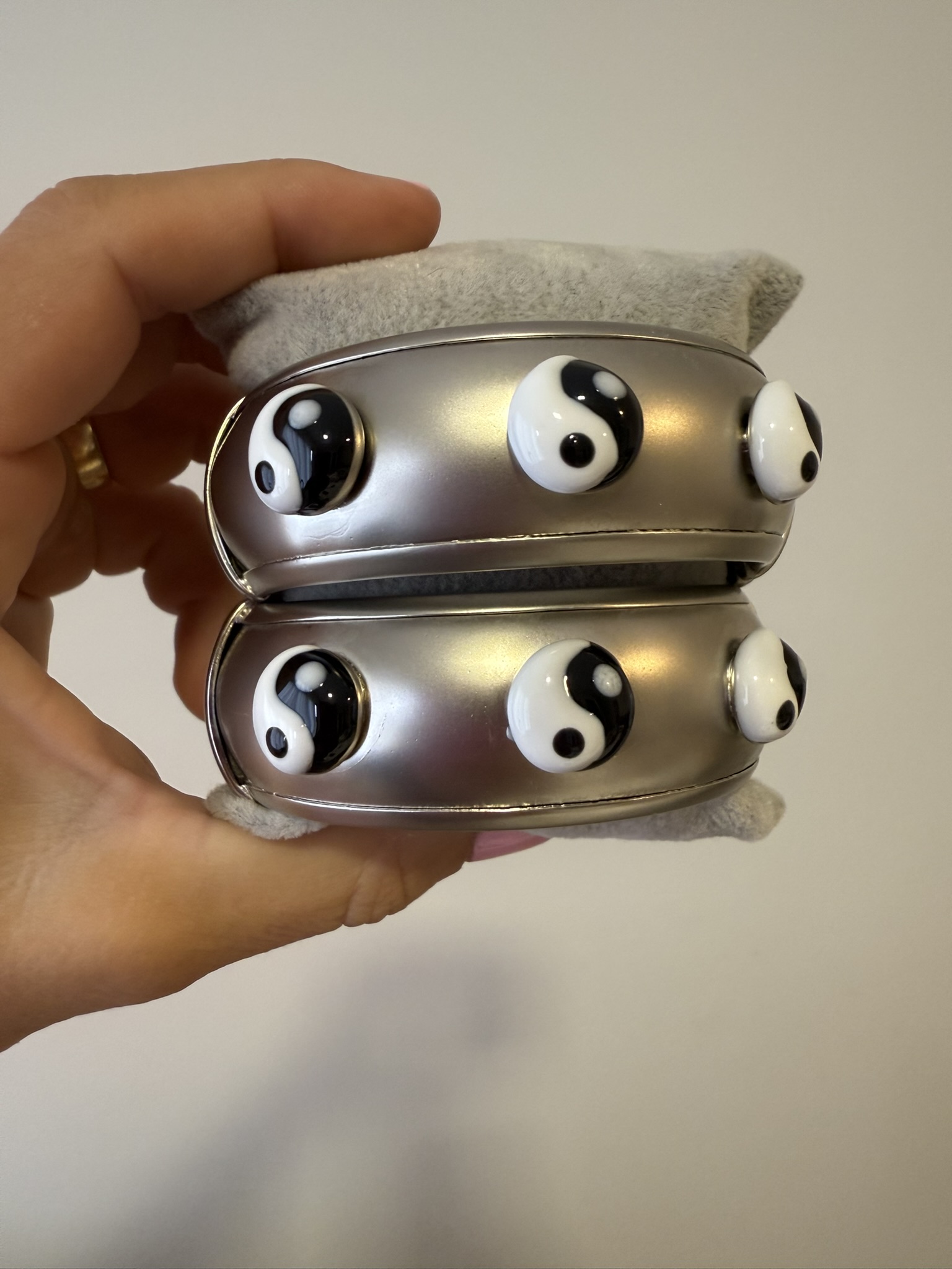 Com design moderno e cheio de personalidade, essa pulseira rígida dourada traz o equilíbrio perfeito entre estilo e espiritualidade. Decorada com apliques em resina do símbolo Yin-Yang em alto relevo, ela representa harmonia e dualidade, unindo moda e significado em uma única peça.