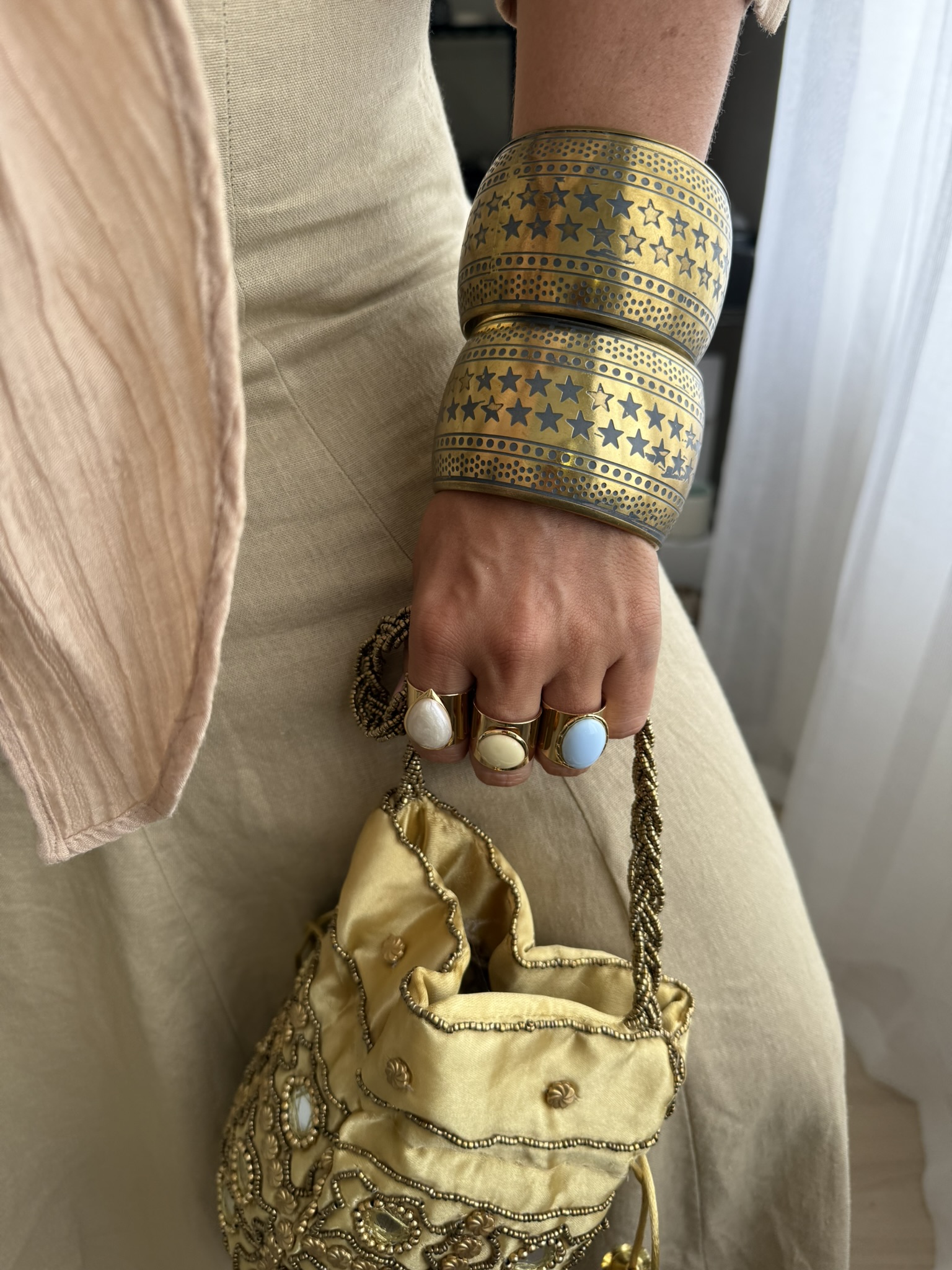 Pulseira indiana de metal, com estrelinhas desenhadas.