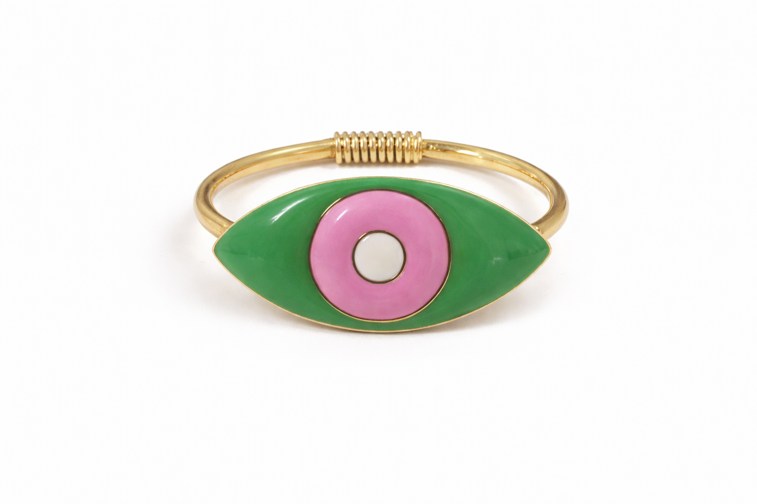 Pulseira banhada a ouro, com imagem de olho grego resinado colorido.