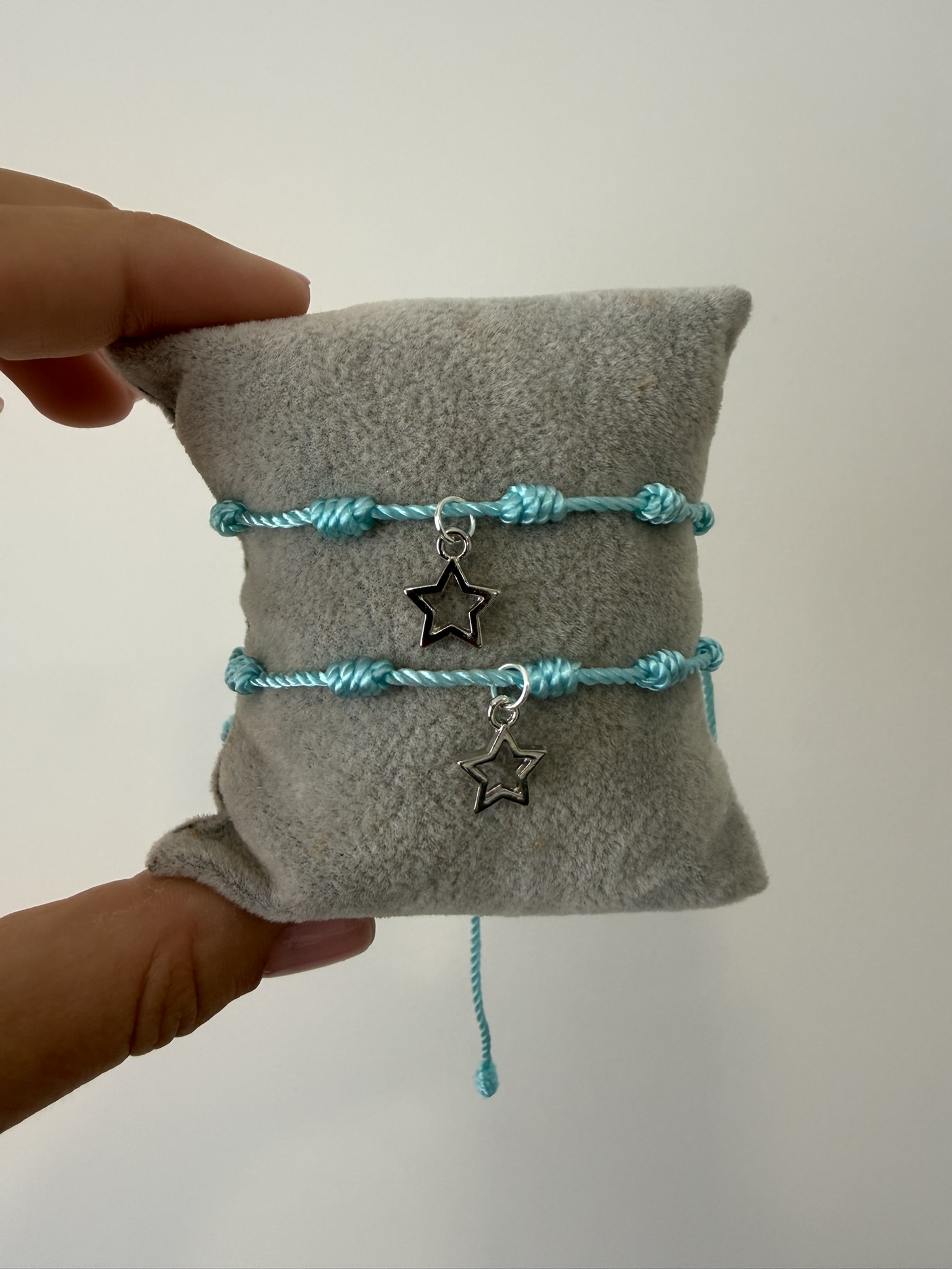 Pulseira de 7 nós na cor turquesa, com pingente estrelinha prateado